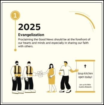 Each year has a theme and each month a dedicated activity to grow in the Way. Below is the summary for Year 1 - 2025. For more information, go to the